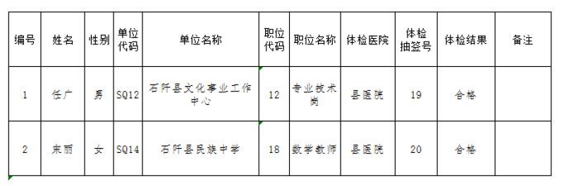 铜仁市2023年“千名英才·智汇铜仁”引才石阡县事业单位岗位递补签约人员体检结果公示