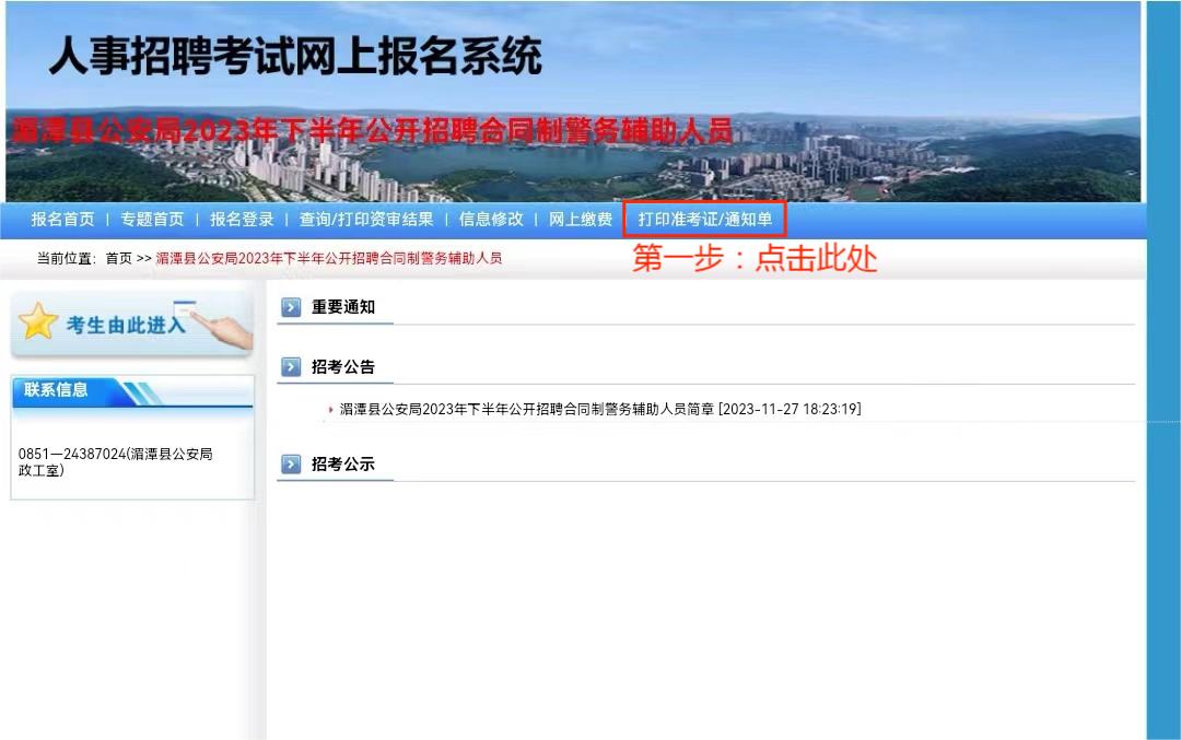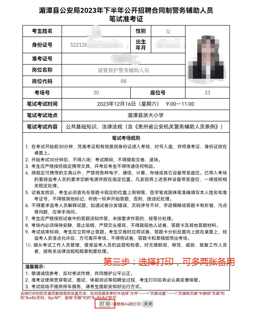 温馨提示:湄潭县公安局2023年下半年公开招聘合同制警务辅助人员网上打印准考证时间:2023年12月12日至12月15日,打印地址:登录报名系统(http://zk.hnlsrl.com/index.php),请考生自行下载打印准考证。逾期不打印准考证者,视为自动放弃,后果由考生自行负责。同时,准考证使用贯穿笔试、面试、体能测试等招聘全过程,考生打印后务必妥善保管。