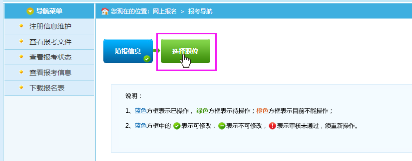 报考者可通过“专题网页”链接登录报名系统,按照如下步骤,查看拟报职位的报名情况。