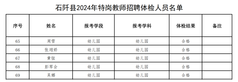 石阡县2024年特岗教师招聘体检结果公示