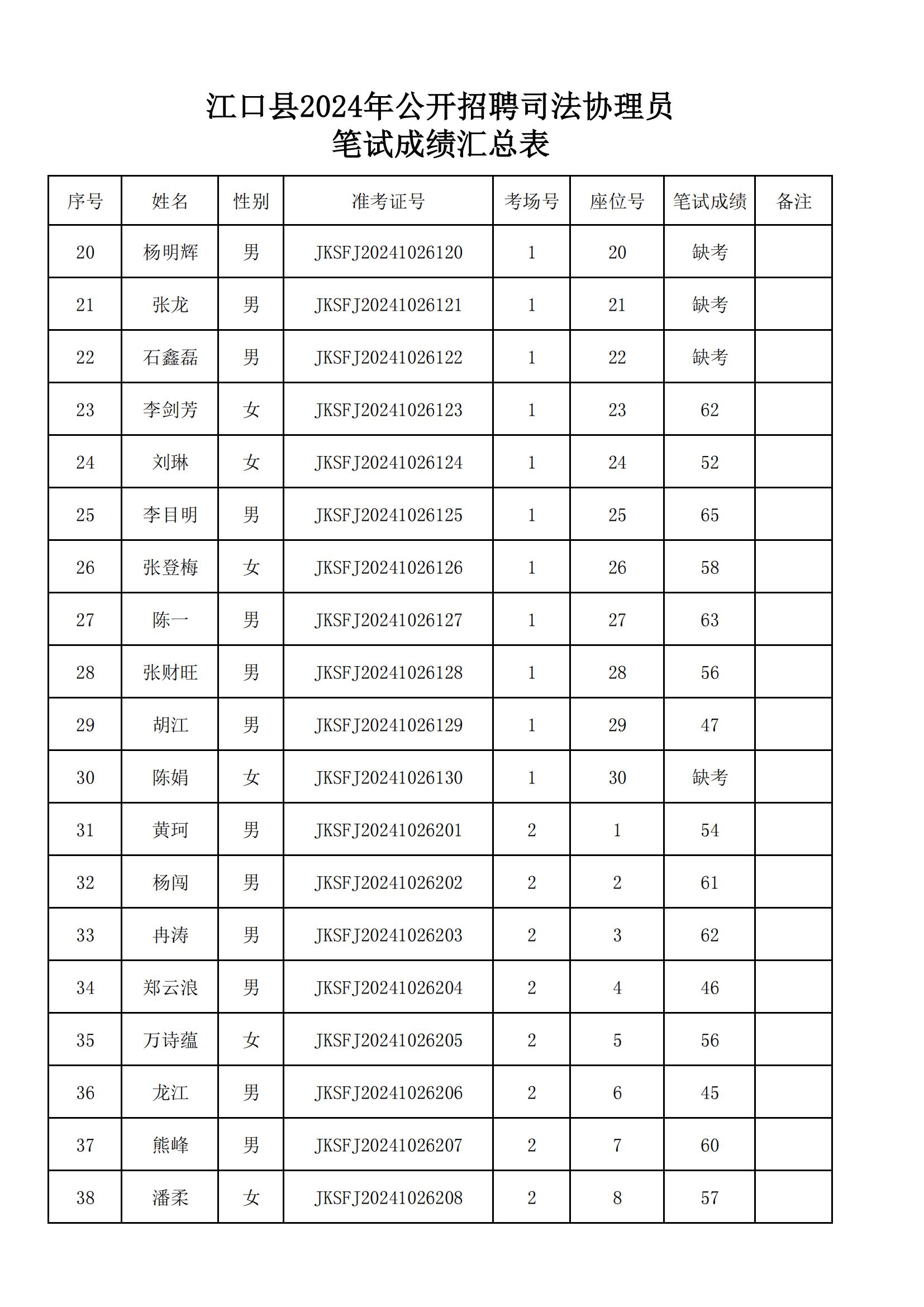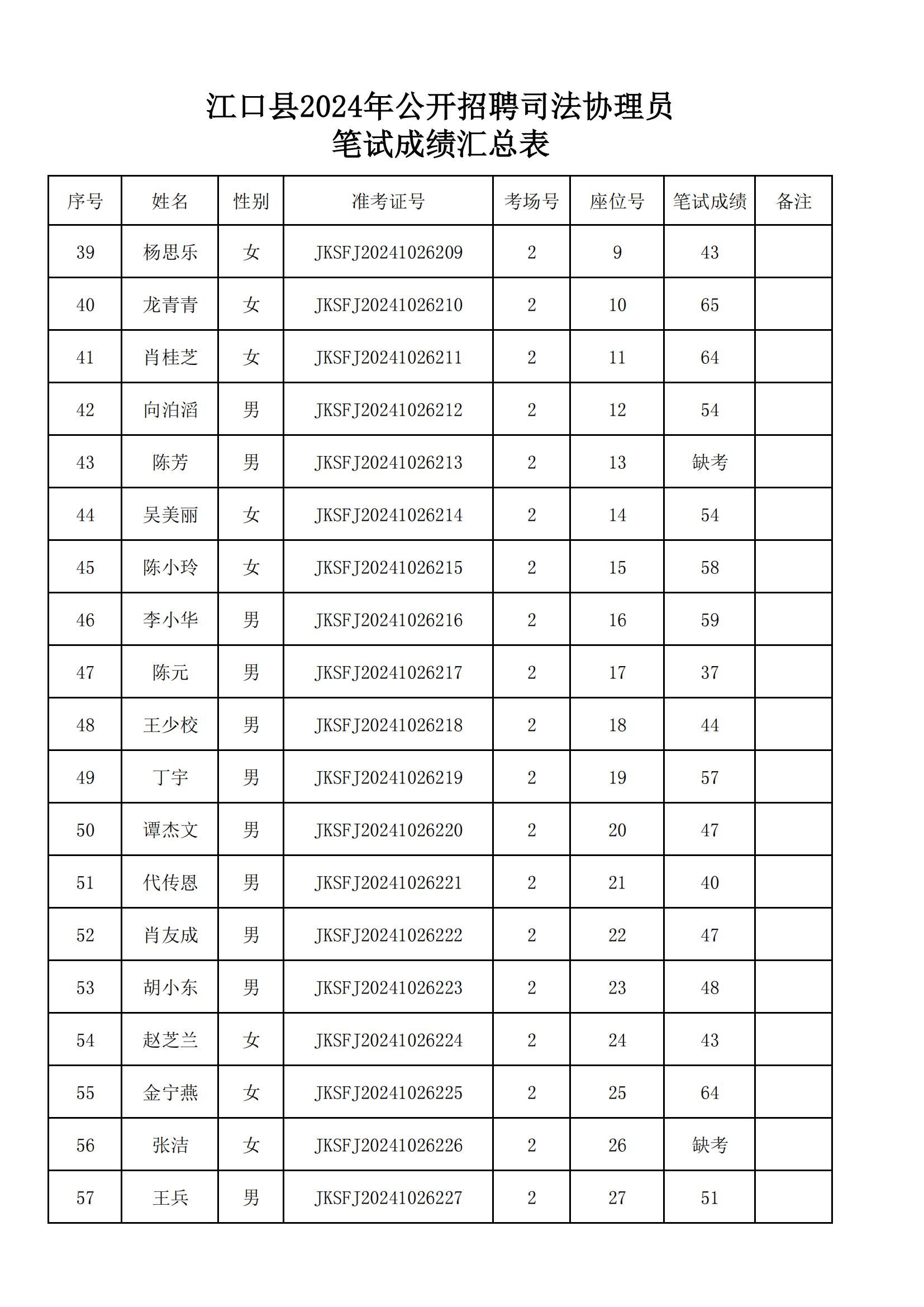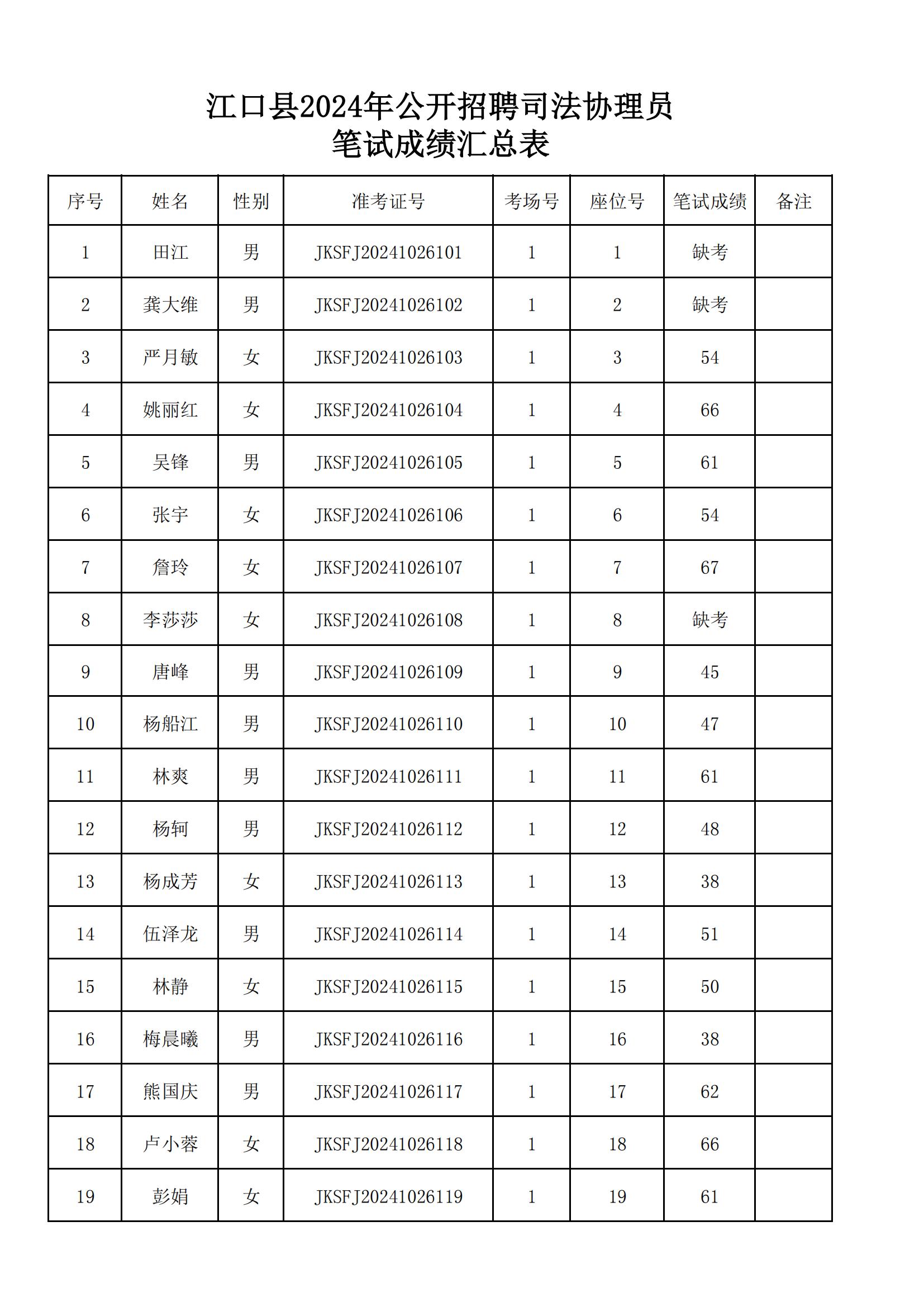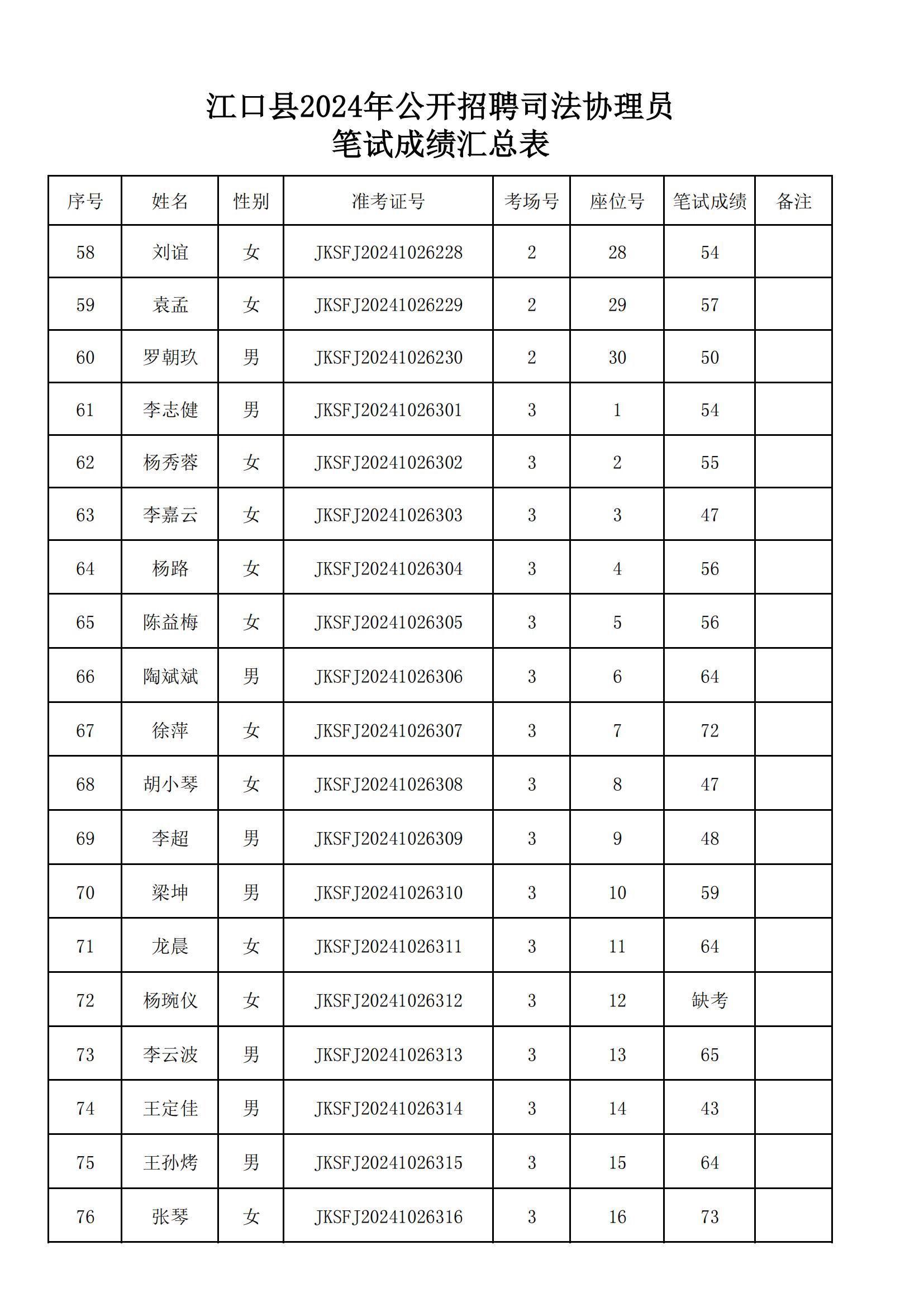 附件:《江口县2024年公开招聘司法协理员笔试成绩汇总表》