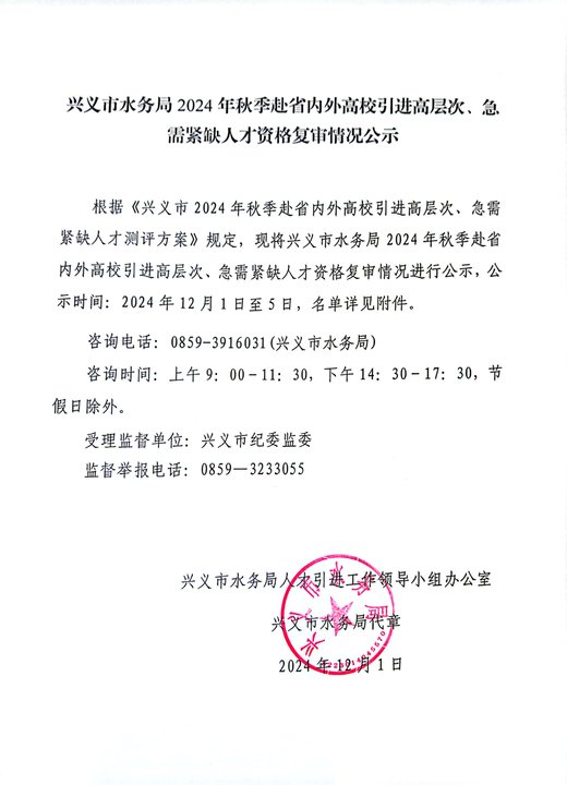 下一篇:兴义市敬南镇2024年秋季赴省内外高校引进高层次、急需紧缺人才复审通过情况公示